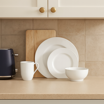 Bringen Sie zeitlose Eleganz auf Ihren Esstisch mit diesem hochwertigen Geschirrset in klassischem Weiß. Das Set besteht aus Tellern, Schüsseln und einer Tasse – perfekt für Frühstück, Mittagessen oder Abendessen. Dank des schlichten Designs lässt es sich vielseitig kombinieren und passt sowohl in moderne als auch in traditionelle Küchen.